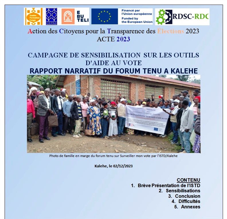 RAPPORT NARRATIF DU FORUM TENU A KALEHE