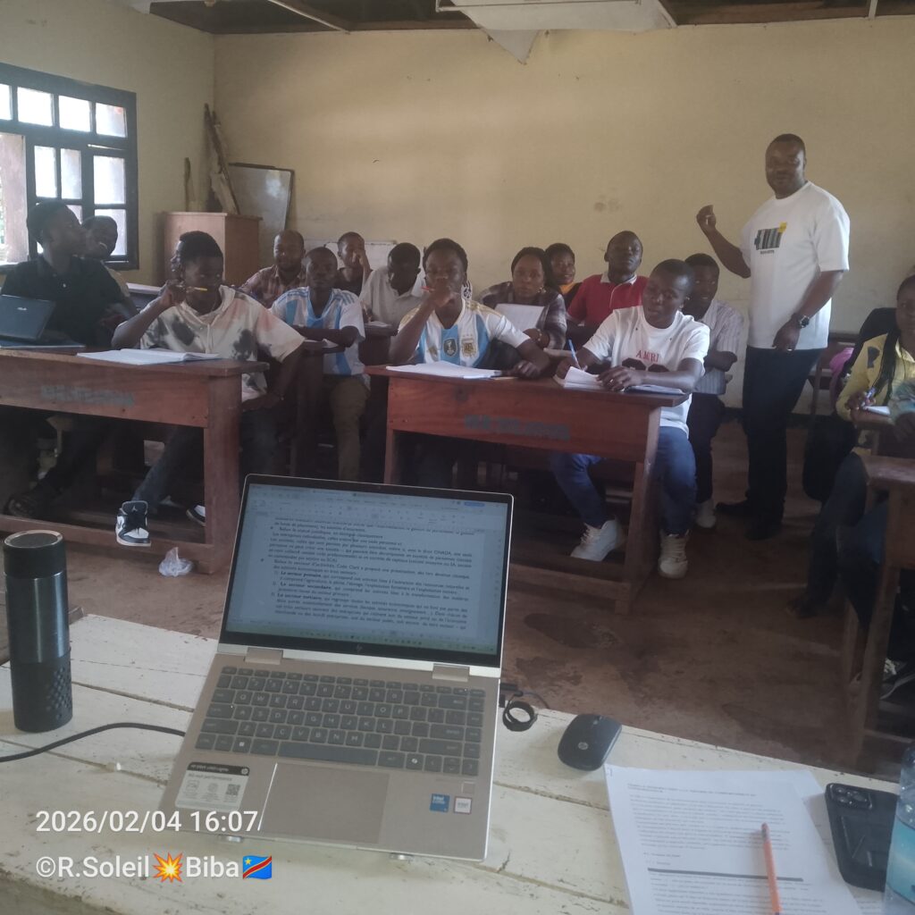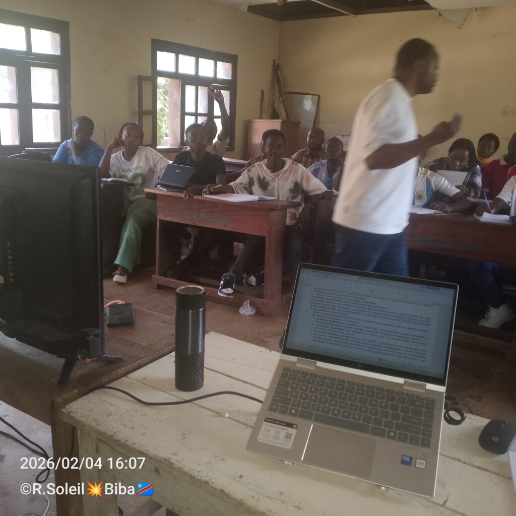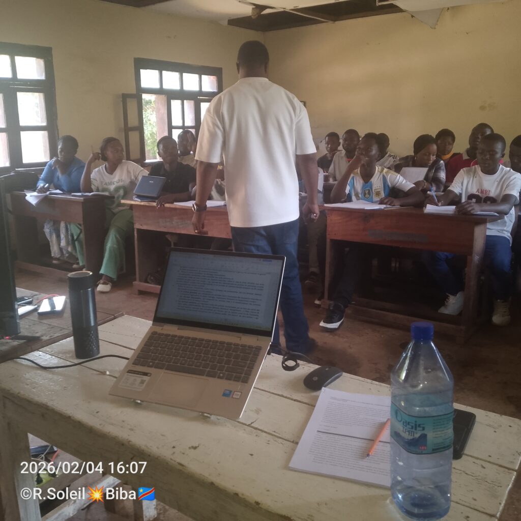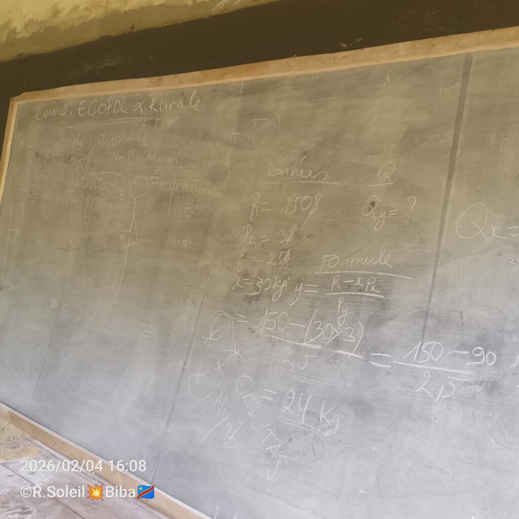 Ce mercredi 4 février 2026, l’Assistant Fabien ZIHINDULA à l’auditoire avec ses apprenants dans le cours d’Ecopol & Rurale.