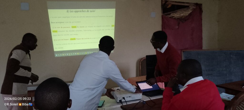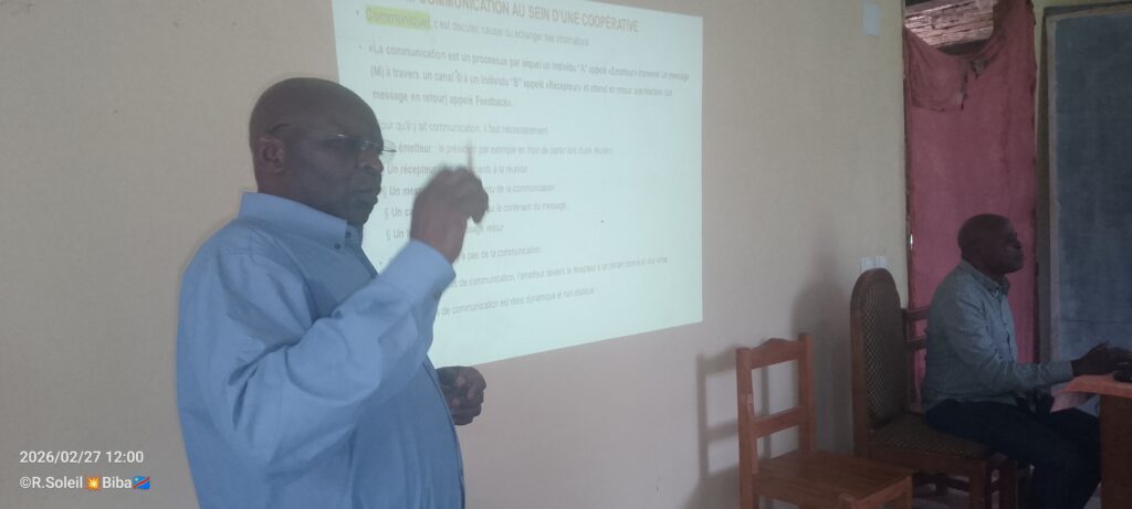 L’Honorable Professeur fidèle MULUMEODERHWA dans l’animation de ses Séminaires de (1. Tronc commun) Suivi et évaluation des projets de développement et (2. Gestion des entreprises de développement rural) Gestion des coopératives agricoles et des entreprises rurales avec les Auditeurs de Master complémentaire du lundi 23 au vendredi 27 février 2026 sur le site universitaire de Bidabanga.